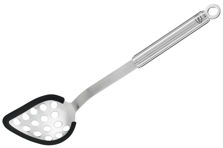 Autres points intéressants, cette cuillère de service ajourée Rosle peut résister à des températures allant jusqu'à 220°C. Et pour le rangement, elle est munie d'un trou vous permettant de la suspendre à une barre de cuisine. Rösle a véritablement pensé à tout !