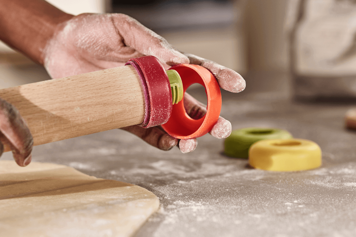 En retirant tous les anneaux, vous pouvez utiliser le rouleau comme un rouleau à pâtisserie classique. Très pratique, n'est-ce pas ?