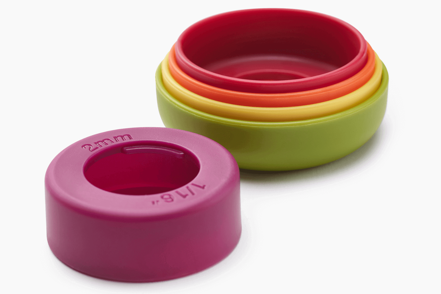 Quel que soit le type de pâtisserie que vous préparez, obtenir une pâte parfaitement dimensionnée est désormais un jeu d'enfant grâce à notre rouleau à pâtisserie réglable Joseph Joseph PrecisionPin. Cet outil innovant est équipé de 5 jeux d'anneaux amovibles à code couleur, vous permettant d'ajuster facilement l'épaisseur de votre pâte selon les besoins de vos recettes : 2mm, 4mm, 6mm, 8mm, 10mm.