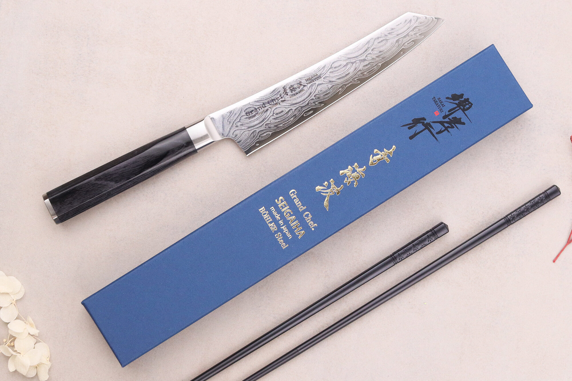 Sakai Takayuki est une marque emblématique de la coutellerie japonaise. Pour sa gamme Grand Chef Seigaiha, elle combine l’héritage de Sakai, ville historique des forgerons de sabres, et le savoir-faire moderne de Seki, centre technique de la lame japonaise. Ce couteau japonais universel Sakai Takayuki illustre parfaitement cette double influence : des matériaux de qualité, un design symbolique fort, et une qualité de coupe professionnelle. Chaque couteau est soigneusement travaillé, du motif au polissage, pour vous offrir un outil fiable, esthétique et performant.