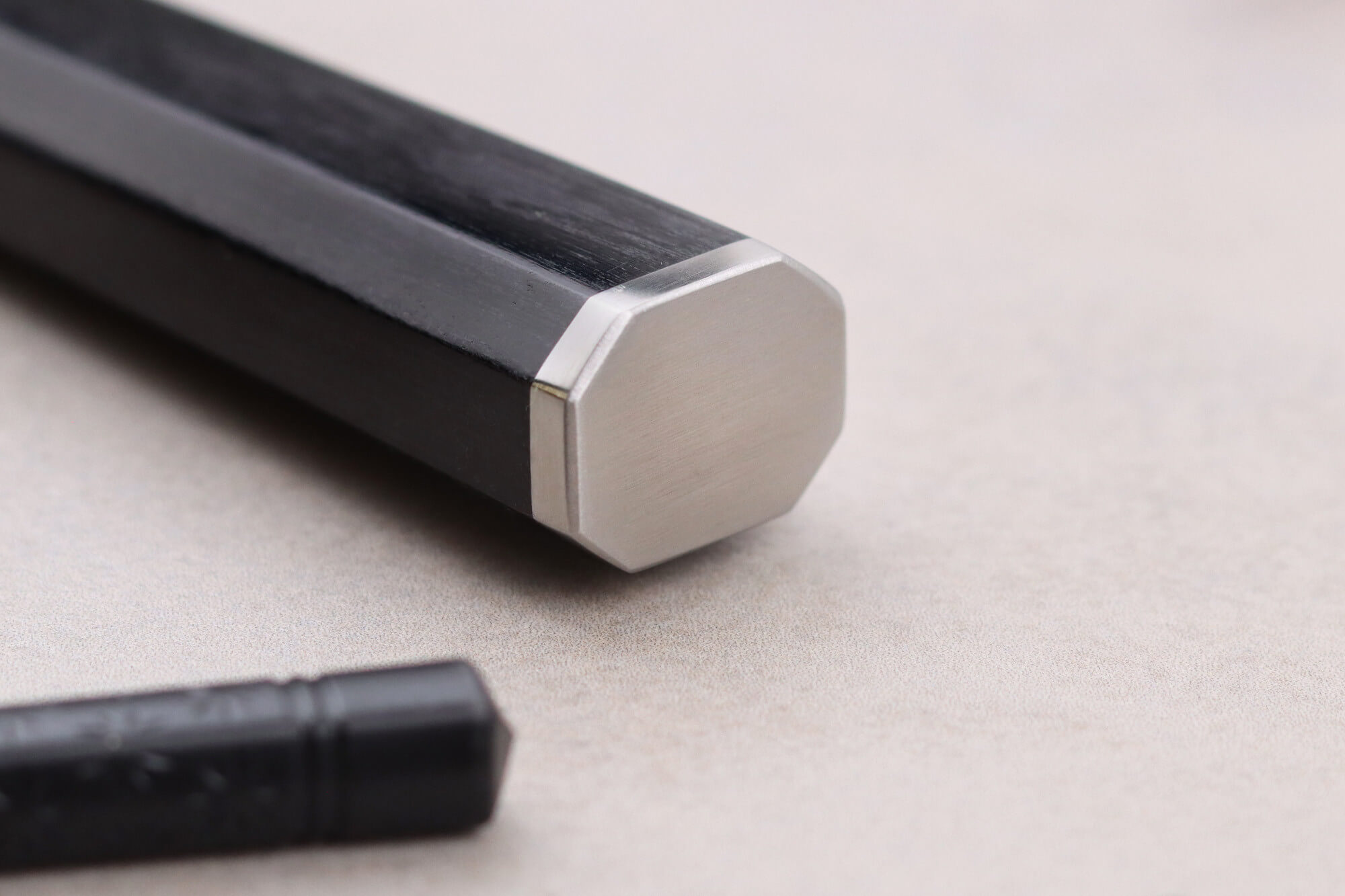 Le manche de 9,4cm a été pensé pour assurer confort, stabilité et précision. Il est fabriqué en bois de Pakka noir, un matériau composite résistant à l’humidité, constitué de bois et de résine compressés à chaud. Le manche est agréable au toucher et conçu pour durer.
