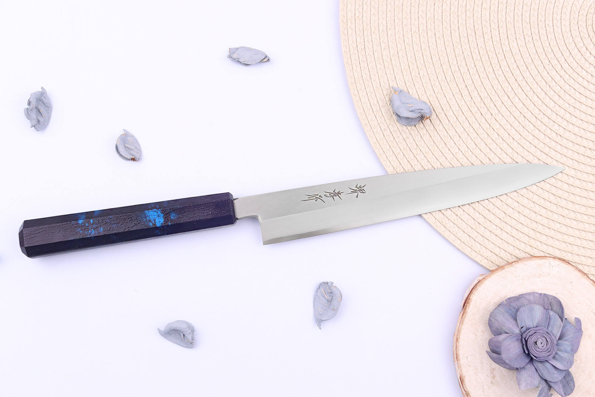 Nouveau client ?Optez pour un couteau yanagiba japonais au manche coloré !