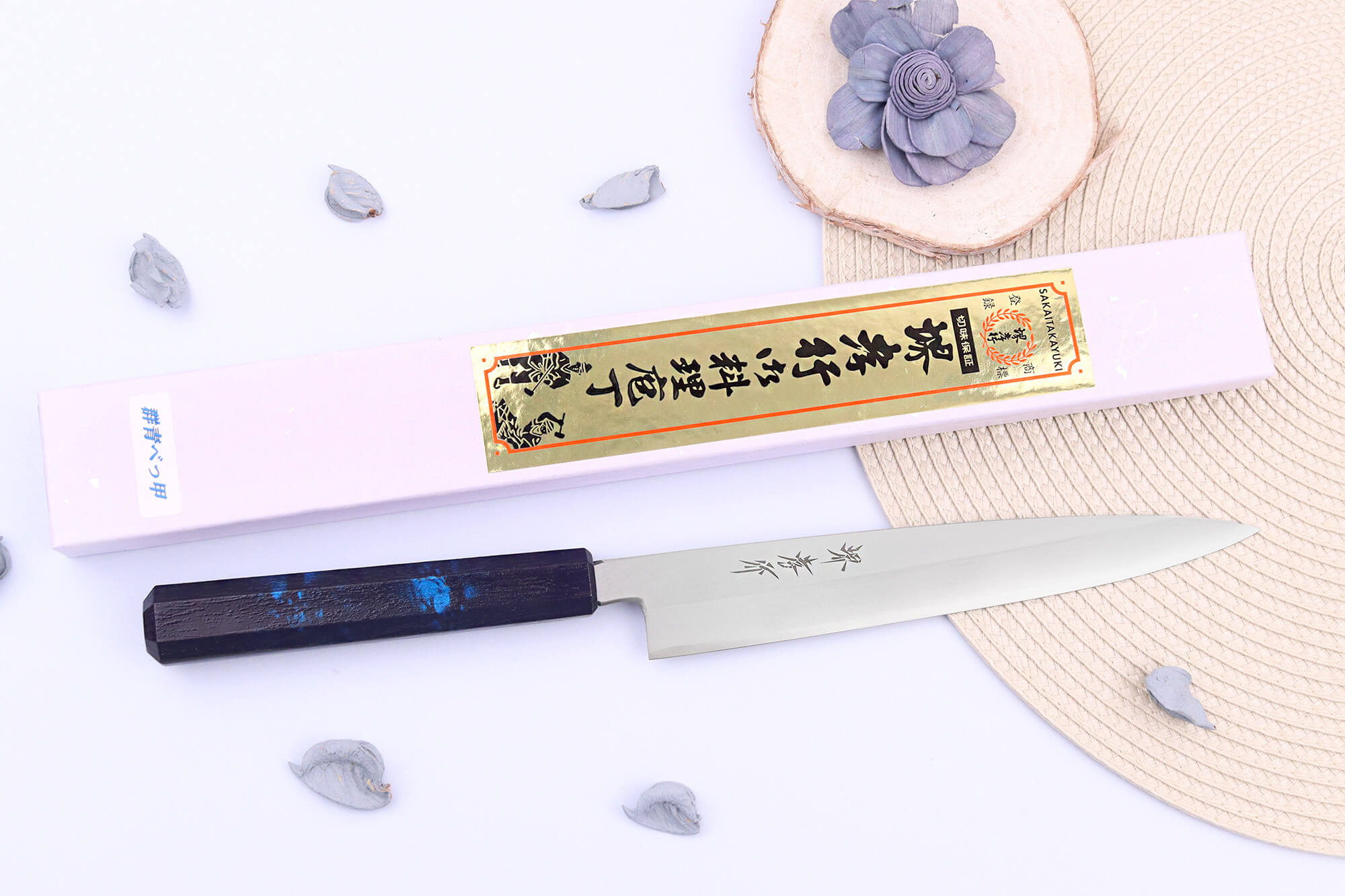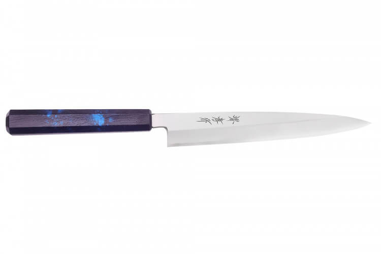 Couteau yanagiba japonais 21cm Sakai Takayuki Nanairo manche en résine ABS..