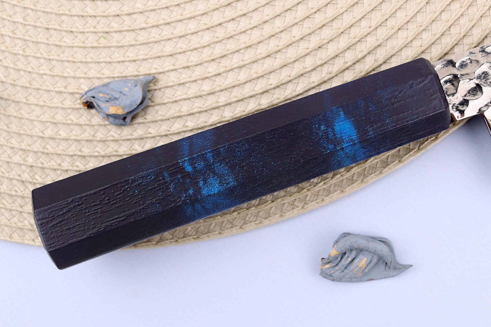 Manche en résine ABS laqué bleu - Effet écaille de tortue
