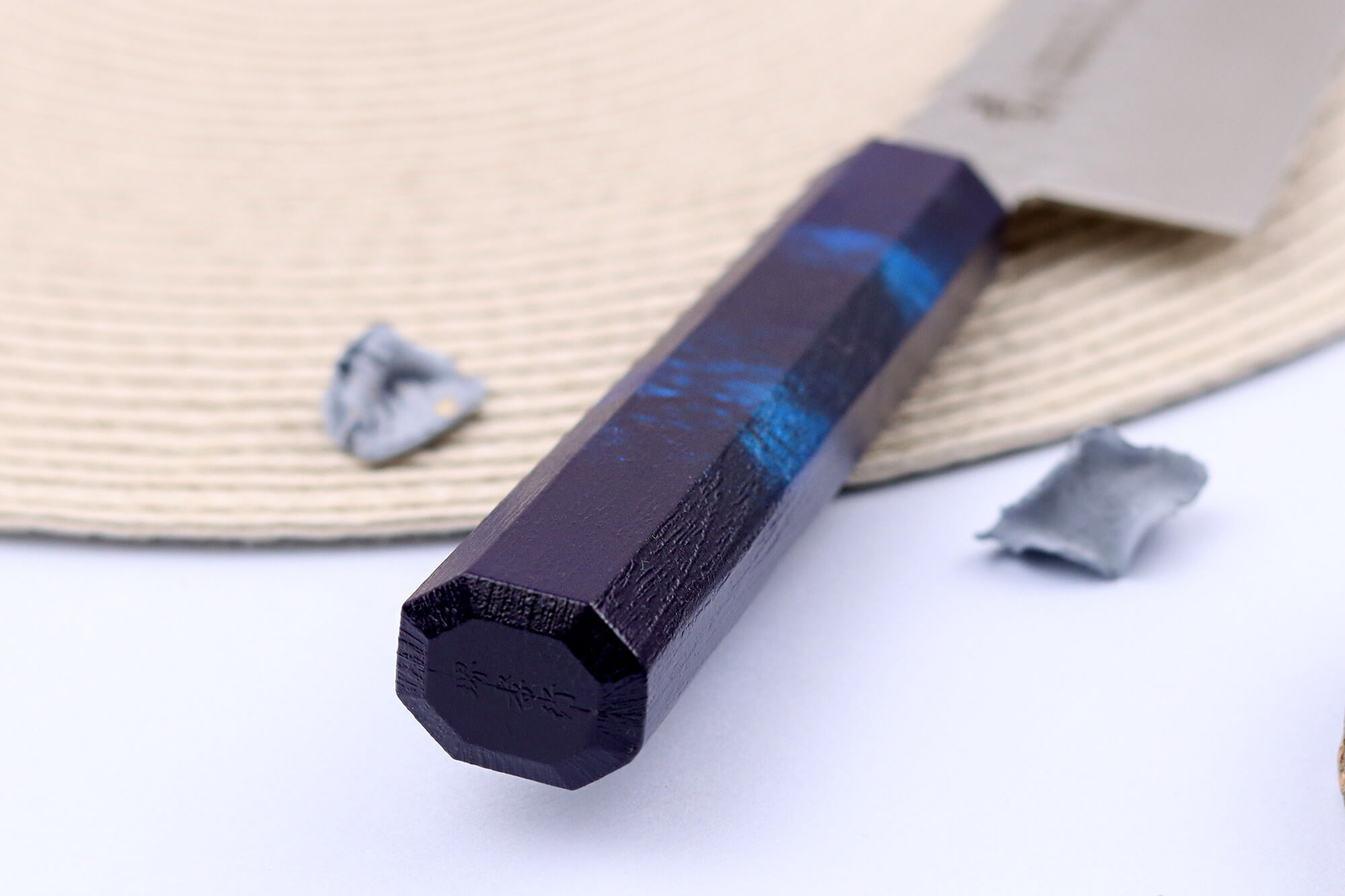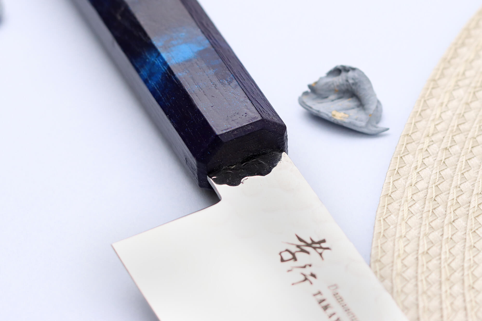 Le manche de ce couteau de cuisine japonais reflète à lui seul tout l’héritage esthétique japonais. Il est fabriqué en résine ABS, puis laqué selon la technique traditionnelle, un savoir-faire ancestral utilisé dans les objets d’art et de décoration japonais. Ce laquage bleu consiste à appliquer un vernis naturel et non toxique, connu pour sa durabilité exceptionnelle et sa capacité à sublimer le bois tout en le protégeant.