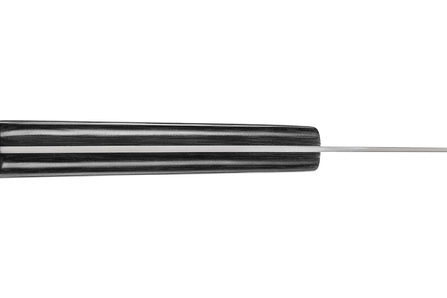 Le manche de ces couteaux est de forme ovale. Il est fabriqué en micarta noir traversé par 3 rivets. Solide, résistant aux températures élevées, mais aussi à l'humidité ambiante, le manche ne glisse pas des mains et n'imprègne pas les odeurs.