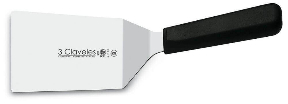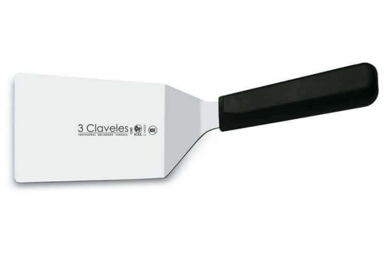 Cette spatule coudée 3 Claveles est idéale pour retourner vos préparations à la poele, au grill, à la plancha. Sa forme coudée lui permet également d'être utilisée en pelle pour la découpe de gratins, tartes etc...