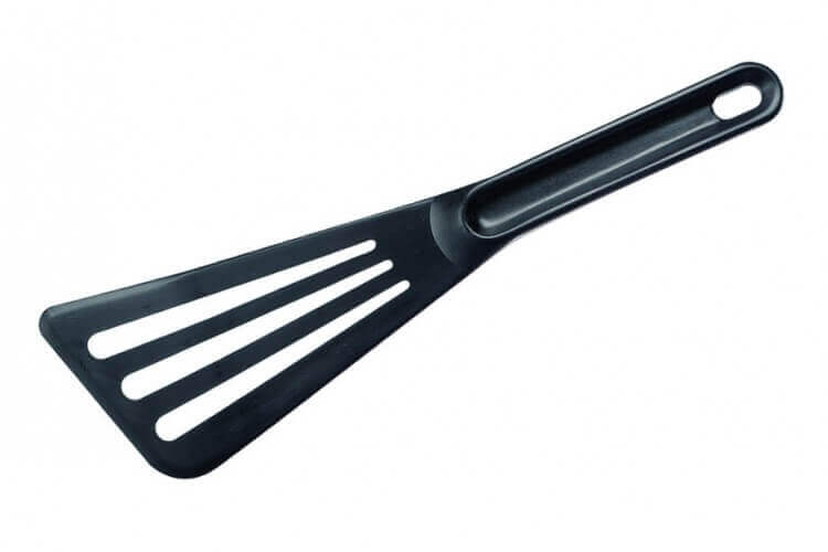 Cette spatule ajourée professionnelle Matfer 30cm noire vous permet de servir ou retourner vos aliments, pour les disposer dans un plat, une assiette, ou leur permettre une cuisson bilatérale. Sa surface ajourée permet de laisser passer les jus indésirables, comme par exemple la graisse d'une viande. C'est un ustensile qui trouve vite sa place en cuisine.