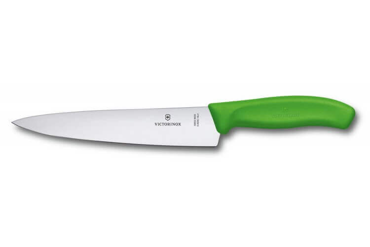 Nouveau client ?Couteau à découper, manche vert, lame 19 cm Victorinox.