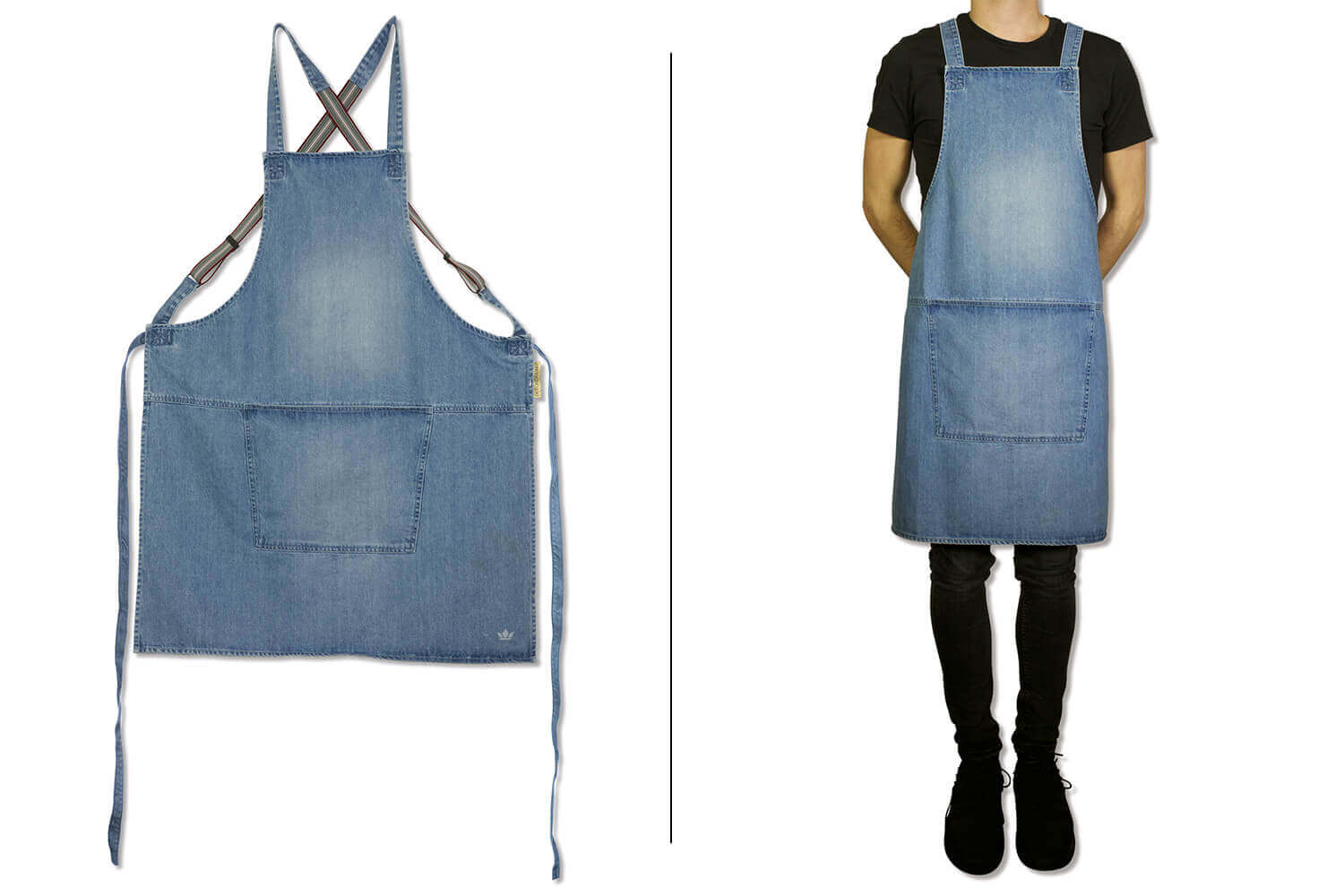 Ce tablier est fabriqué en toile denim 100% coton. Le coton est une matière parfaitement résistante et agréable à porter.