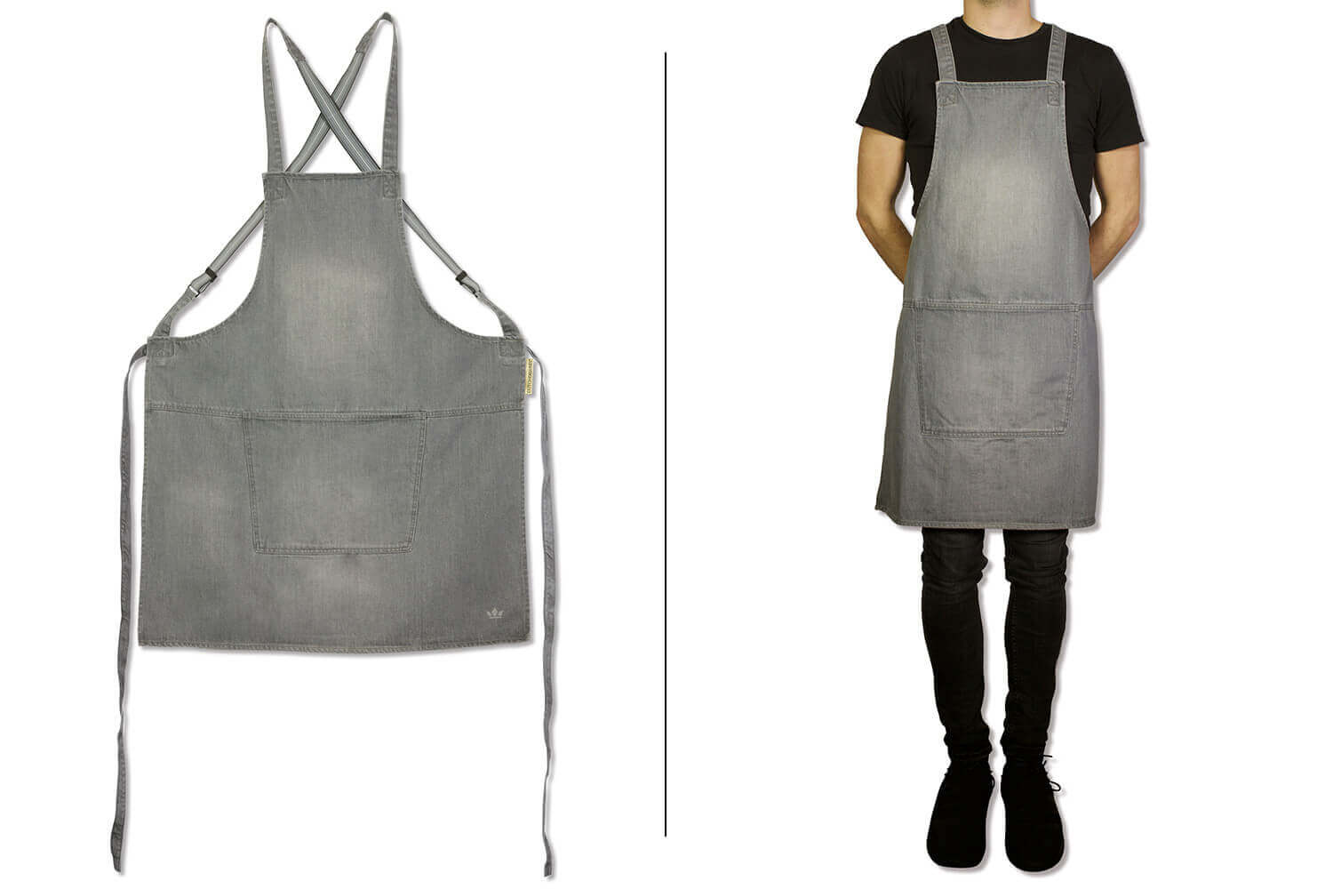 Ce tablier est conçu de manière à être le plus confortable à porter, même sur une longue période. En effet, il est équipé de bretelles élastiques qui viennent se croiser dans le dos pour un maintien ferme. Avec ce système vous n'avez aucune pression au niveau du cou, ce qui est beaucoup plus agréable à porter. Les bretelles sont par ailleurs réglables afin de s'adapter au mieux à votre carrure.