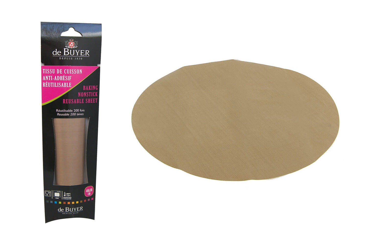 La toile de cuisson De Buyer présente bien des avantages. Elle est conçue en fibre de verre très solide revêtue de PTFE pour être parfaitement anti-adhésive des 2 côtés.