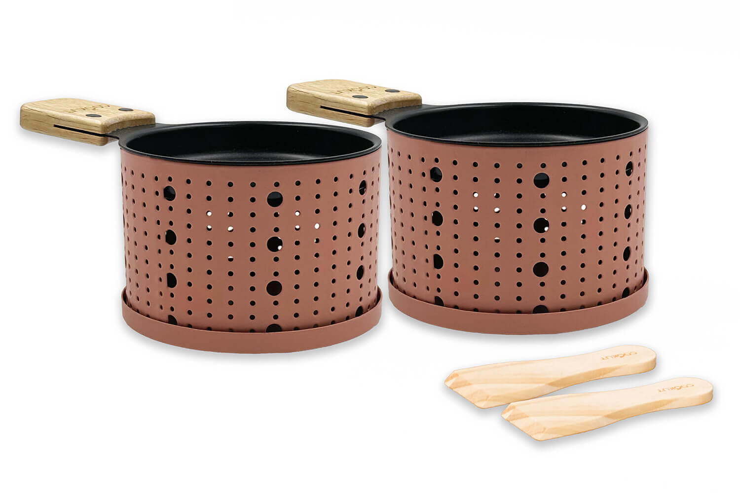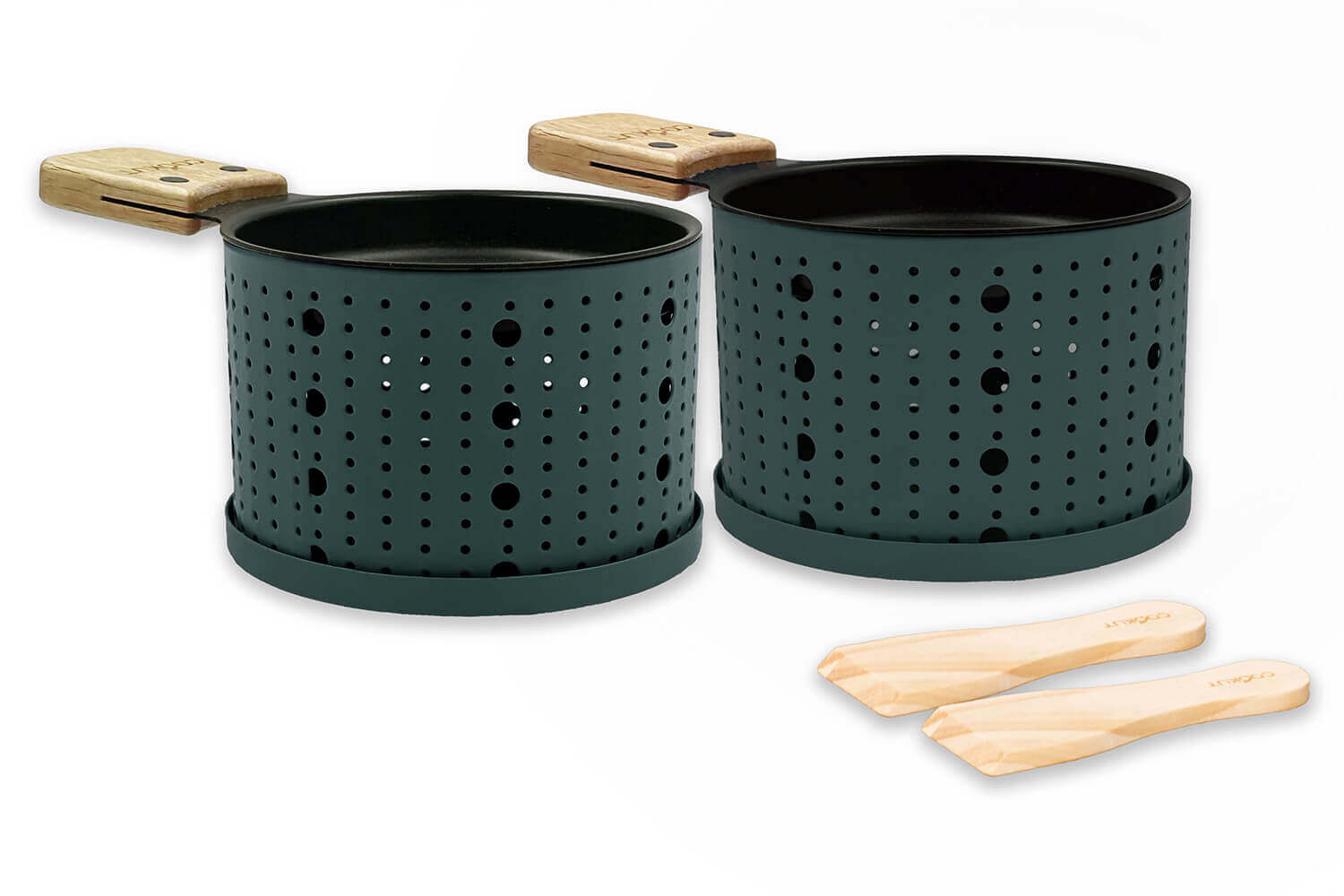 Choisissez votre service à raclette pratique et écologique de votre couleur préférée avec le service à raclette Cookut Lumi pour 2 personnes !
