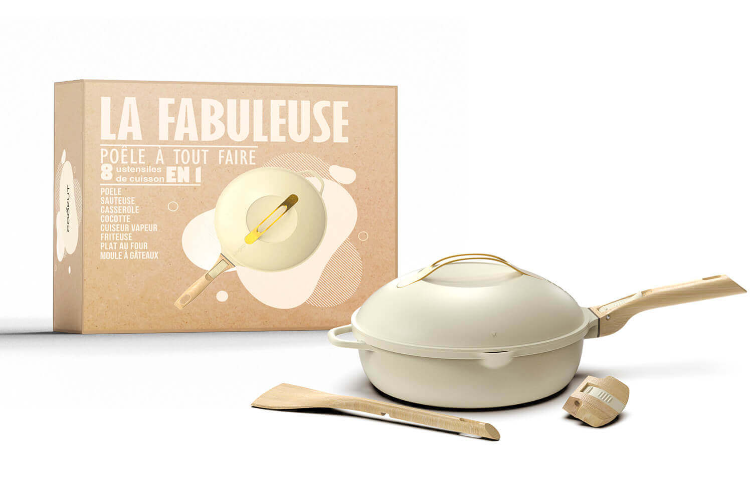 La Fabuleuse est une poêle extrêmement polyvalente car elle fait le travail de 8 ustensiles de cuisson :