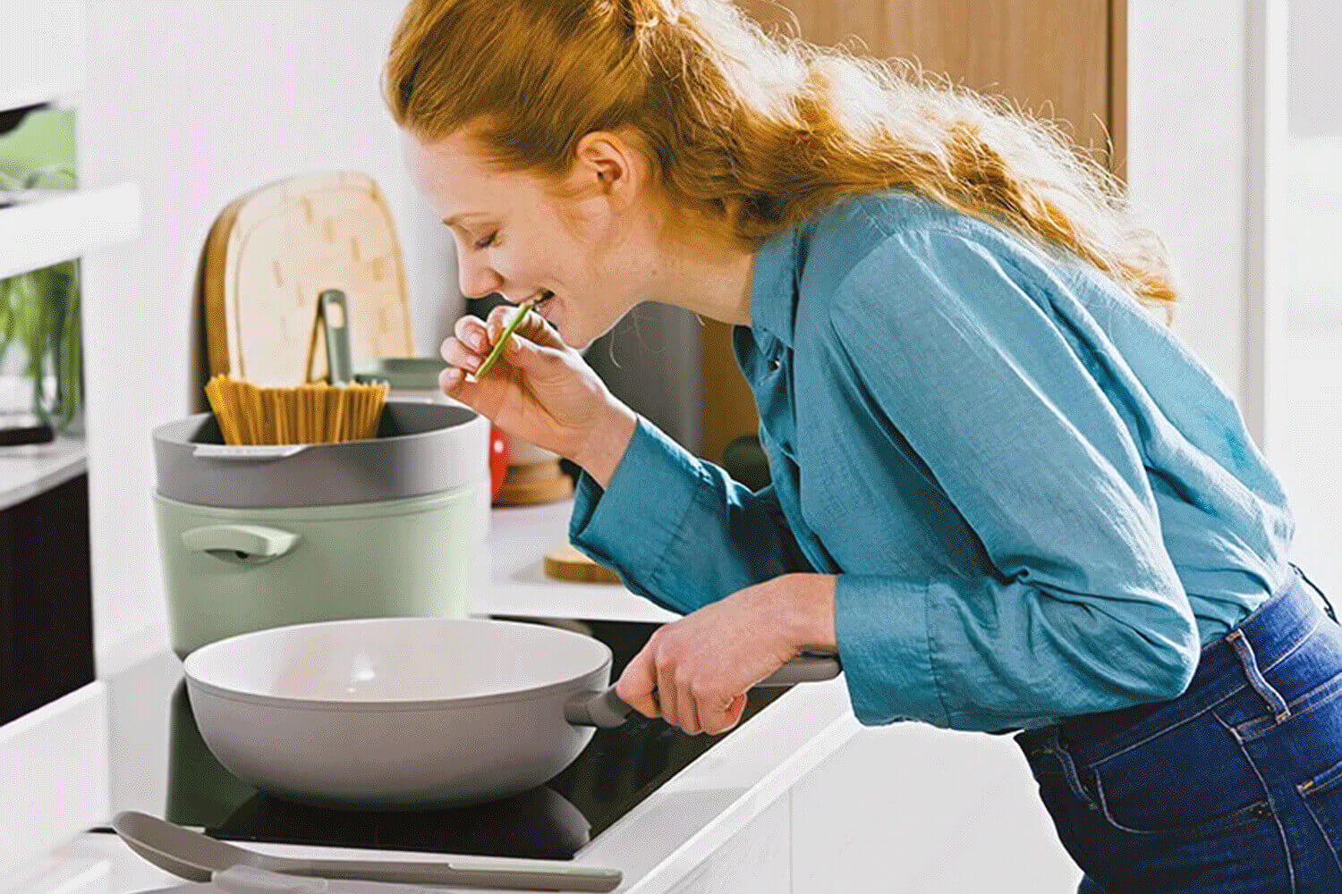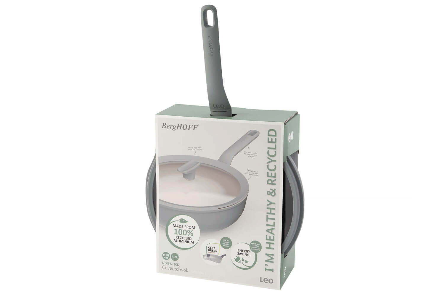 Le wok Leo Balance Moonmist est également pourvu d'un manche anti chaleur agréable au toucher et sécurisée.