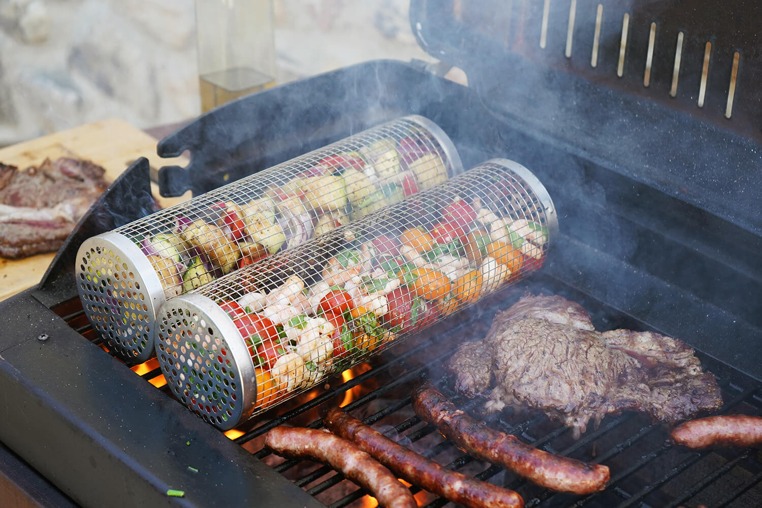 Avec leur forme cylindrique, les grilles de cuisson sont idéales pour cuire les petits légumes, les fruits, les crustacés, les pommes de terre et les viandes émincées. Vos préparations se parent d'un délicieux goût fumé qui vous ouvre un nouvel horizon de saveurs. De plus, ces grilles mesurent 30cm de long et 9cm de diamètre, ce qui les rend compatibles avec tous les barbecue à charbon ou à gaz aux bonnes dimensions.