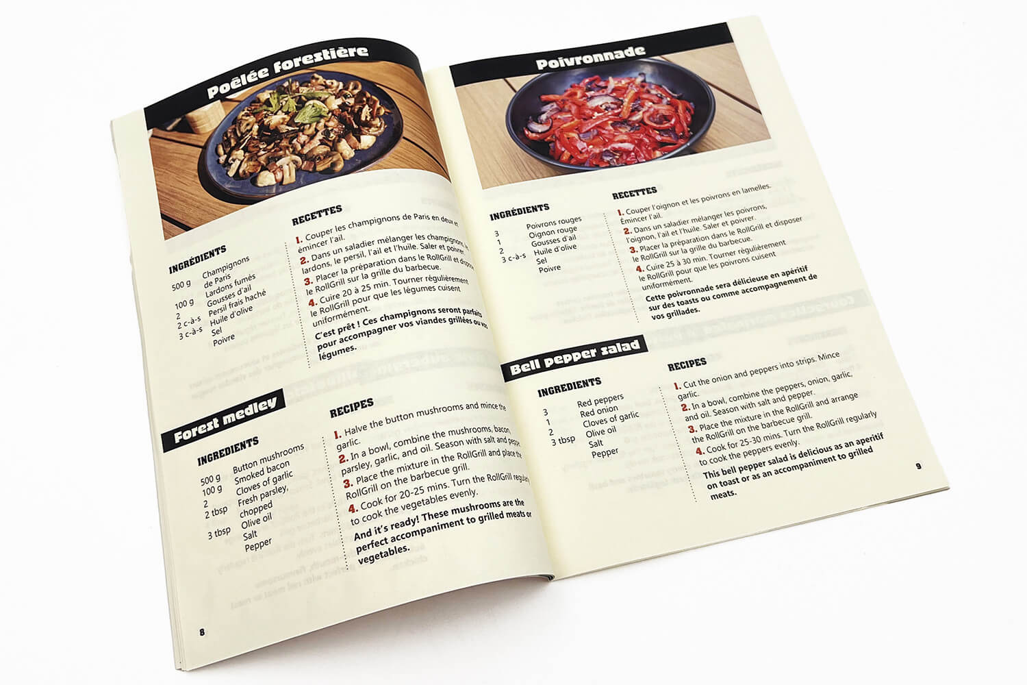 Un livret de 20 recettes est également fourni dans ce coffret pour vous donner de nouvelles inspirations. Du classique poulet mariné au citron à la poêlée champêtre sans oublier l'originale grillade de fruits d'été aux amandes, le livret de recettes vous aide à utiliser au mieux votre set Roll Grill !