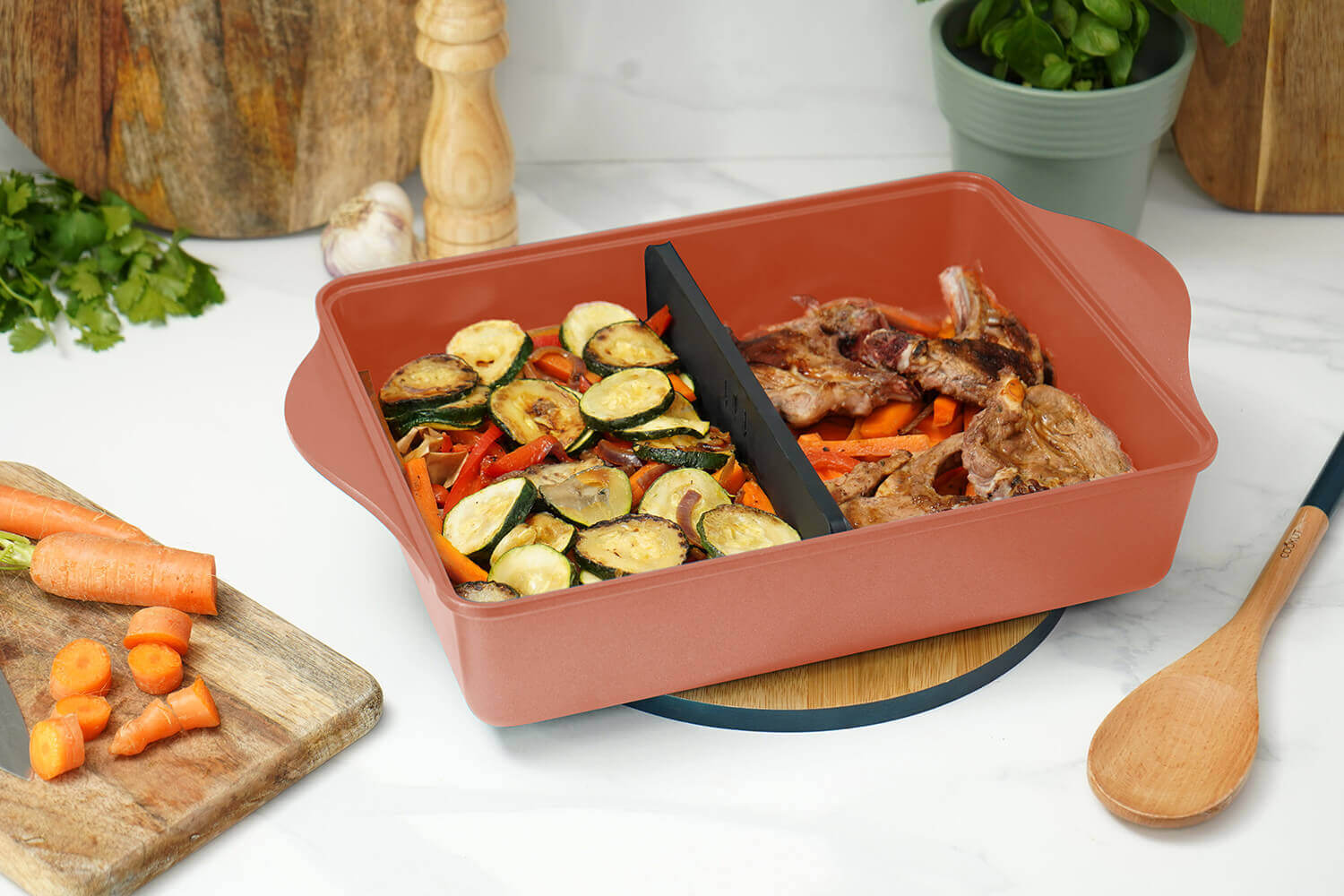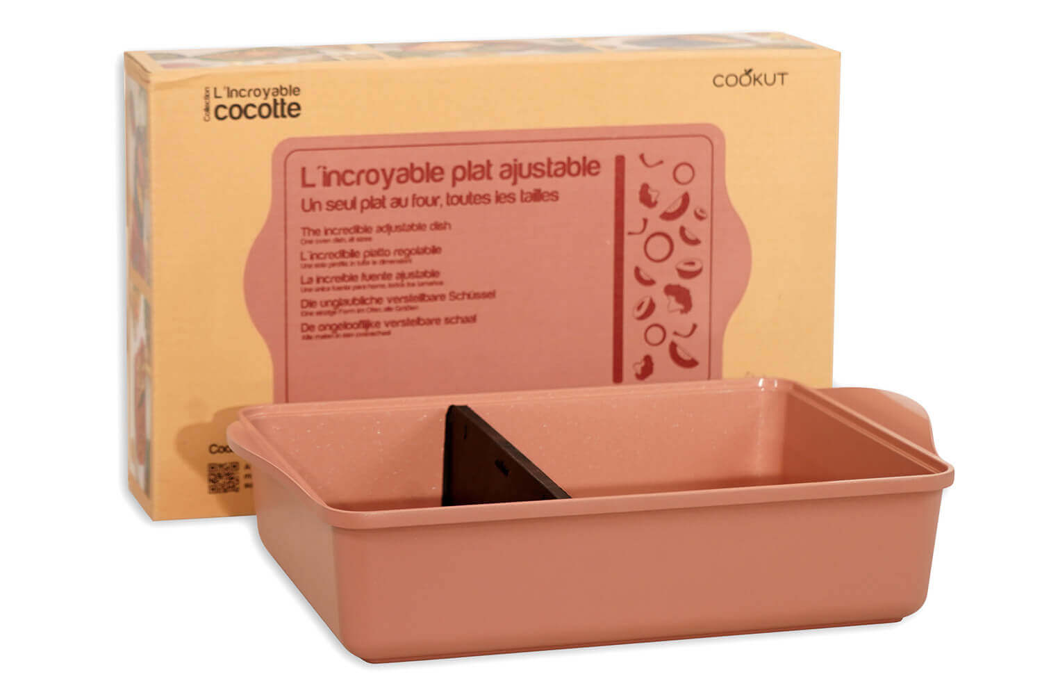 L'Incroyable Plat Ajustable vous accompagne pour des repas en famille réussis ! Grâce à son séparateur breveté, il permet de moduler l’espace de cuisson selon vos besoins, vous permettant de réaliser plusieurs préparations en une seule fournée sans encombrer votre four. Idéal pour les cuisiniers passionnés, ce plat innovant répond aux envies de cuisine variée.