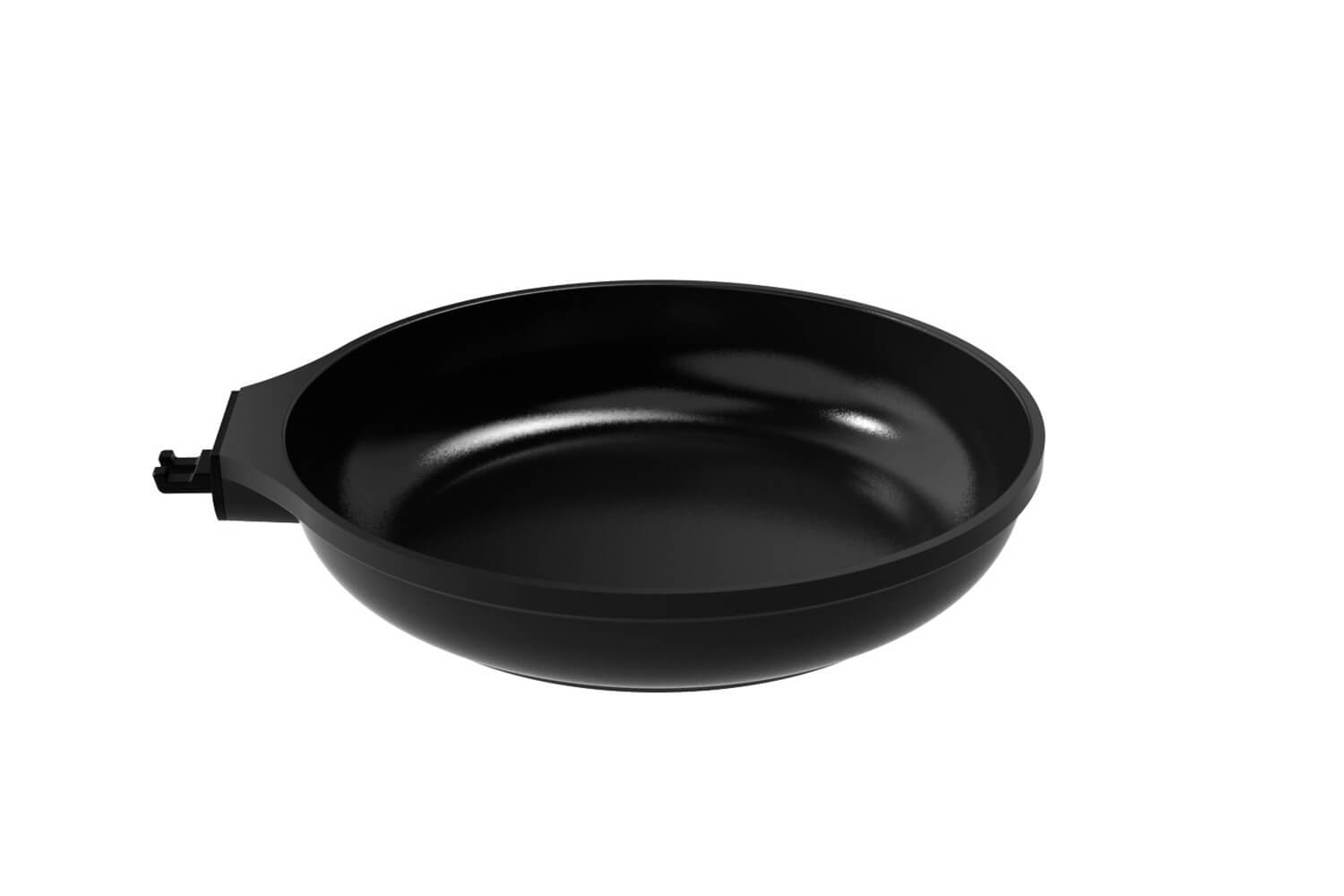 Vendue sans poignée, la poêle est facile à ranger dans vos placards en l'empilant avec le reste de vos ustensiles. Son encombrement est restreint. La poignée est disponible ici.