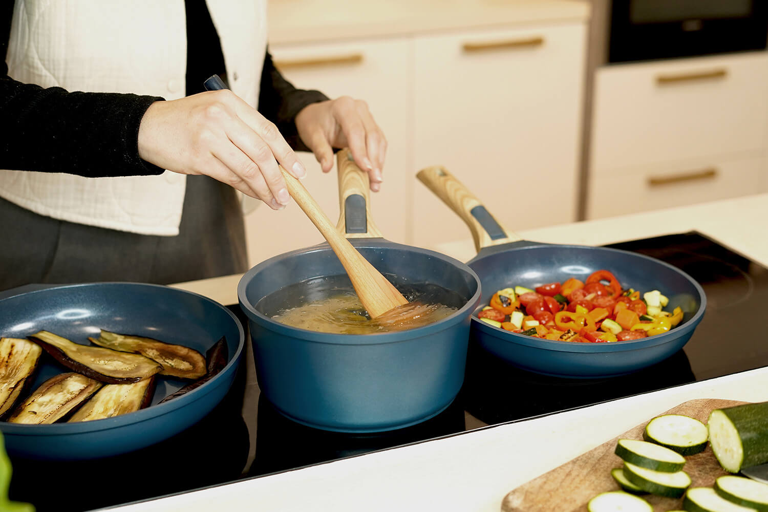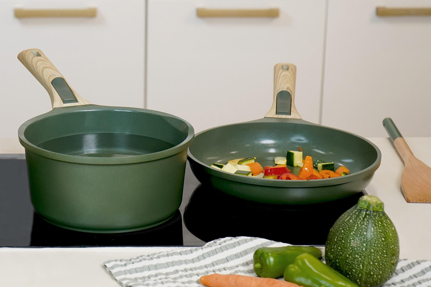 L'Incroyable Poêle Cookut de 24cm est conçue pour vous offrir une cuisson plus saine tout en étant plus respectueuse de l’environnement. Elle est fabriquée en aluminium robuste, garanti sans PFAS ni bisphénol, assurant ainsi une cuisine sans substances controversées.