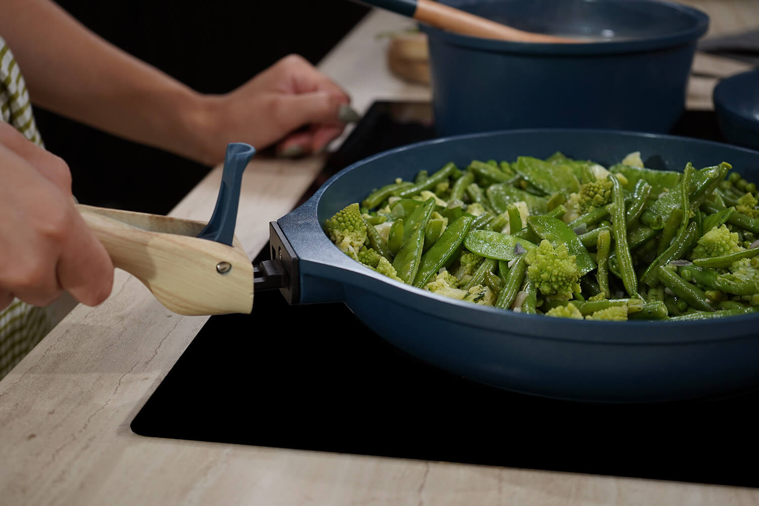 Elle possède un revêtement antiadhérent en céramique, garantissant une cuisson sans accrochage et ne nécessite que très peu de matière grasse. Elle est parfaite pour une cuisine saine et permet de cuire facilement des œufs, du poisson, des légumes ou encore de la viande.
