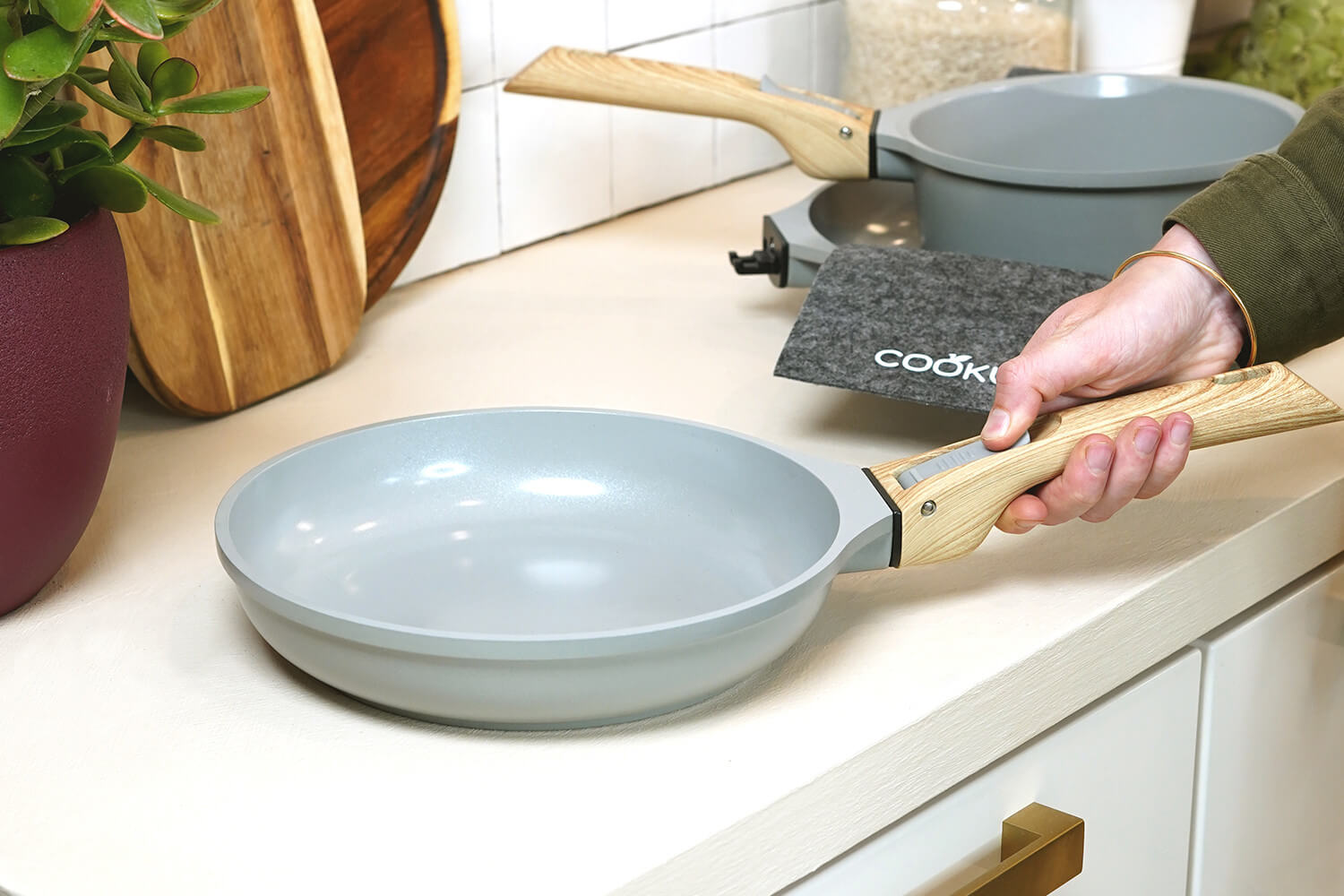Nouveau client ?La poêle Cookut antiadhésive colorée et efficace !