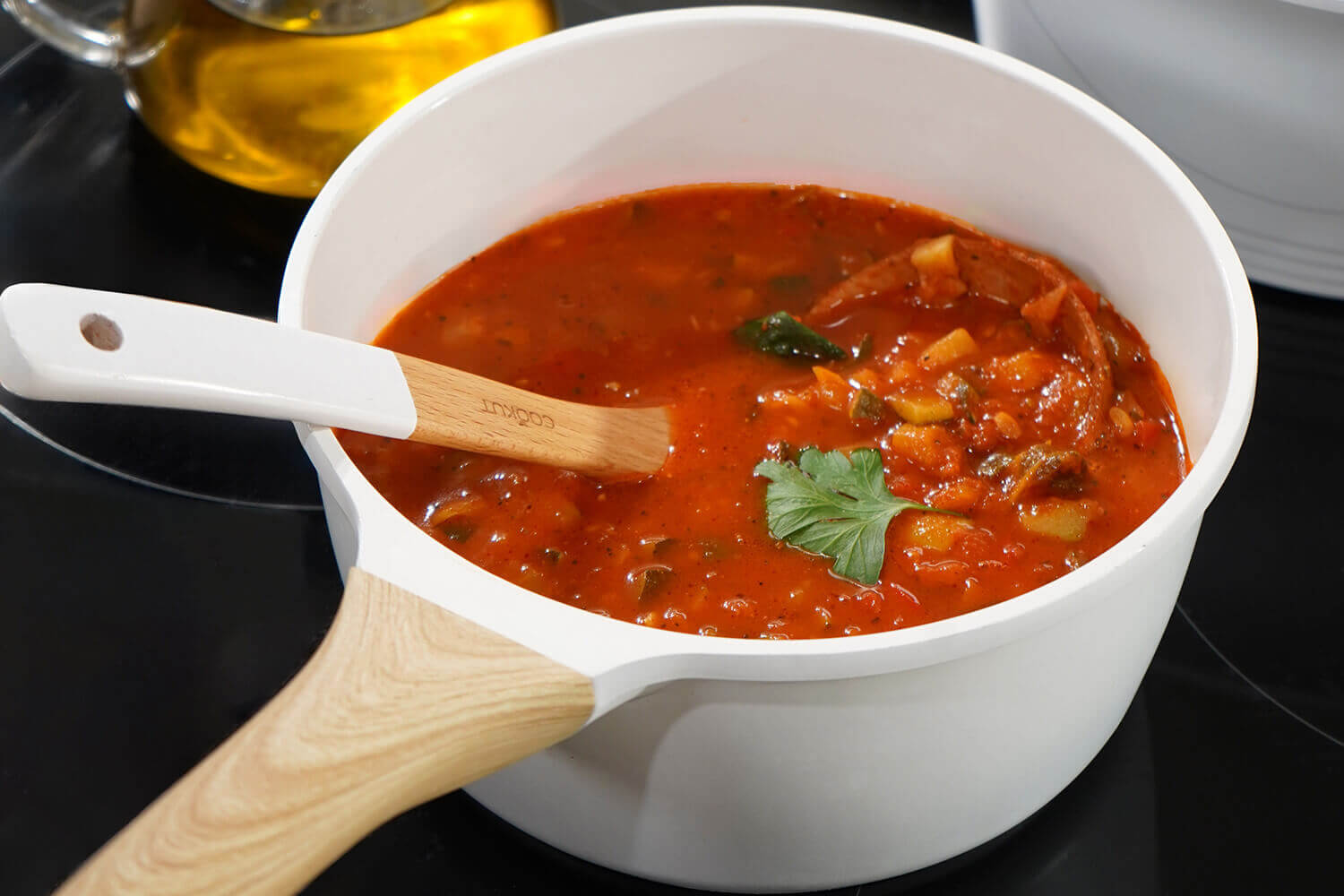 Pour préserver les performances de votre casserole Cookut, il est recommandé d'utiliser des ustensiles en silicone ou en bois afin de ne pas abîmer le revêtement antiadhérent. Après utilisation, laissez la casserole refroidir avant de la nettoyer à la main, ou au lave-vaisselle pour gagner du temps.