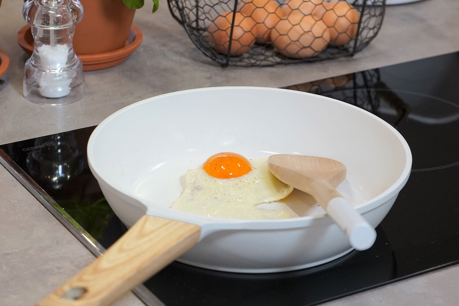 Nouveau client ?Cuisinez à la perfection avec ce poêle Cookut blanc polaire !