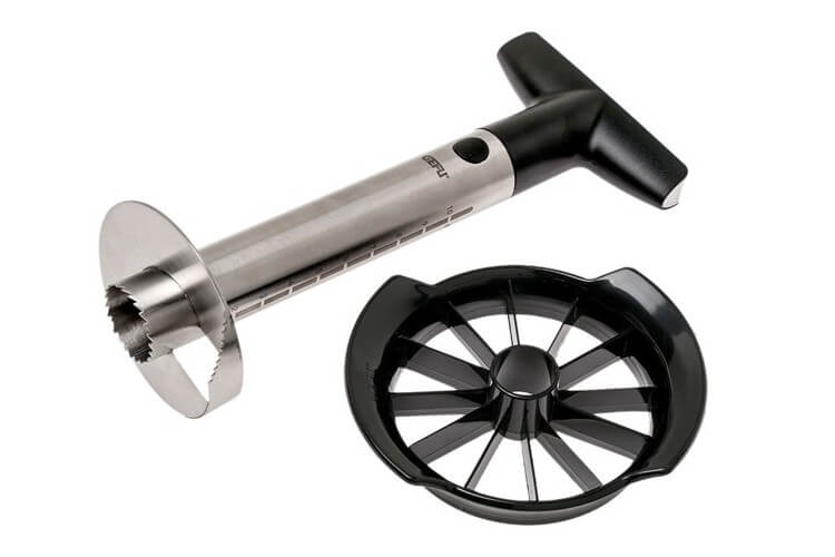 - 1 trancheur 12 segments : il permet d'obtenir des petits morceaux de fruits parfaits. Il est idéal pour les ananas, les pommes ou encore les poires.