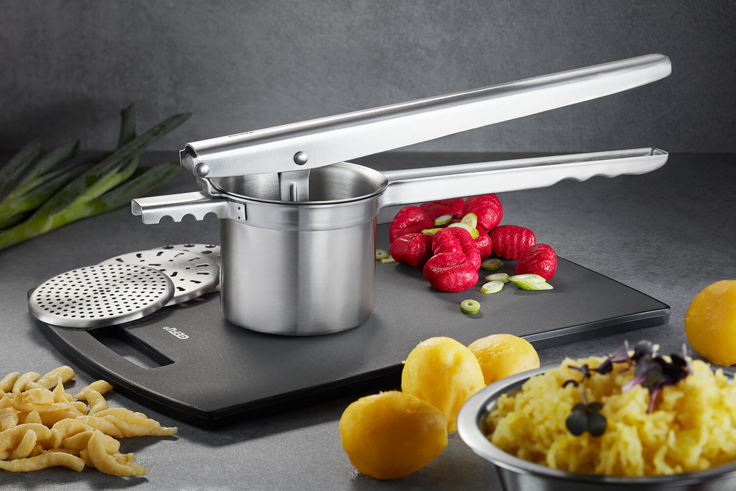 Que vous soyez amateur de pommes de terre écrasées, de jus maison ou de spécialités alsaciennes, la presse en inox Gefu Penso est un ustensile incontournable de votre cuisine ! Avec son système ingénieux de disques interchangeables, elle vous permet de cuisiner selon vos envies.