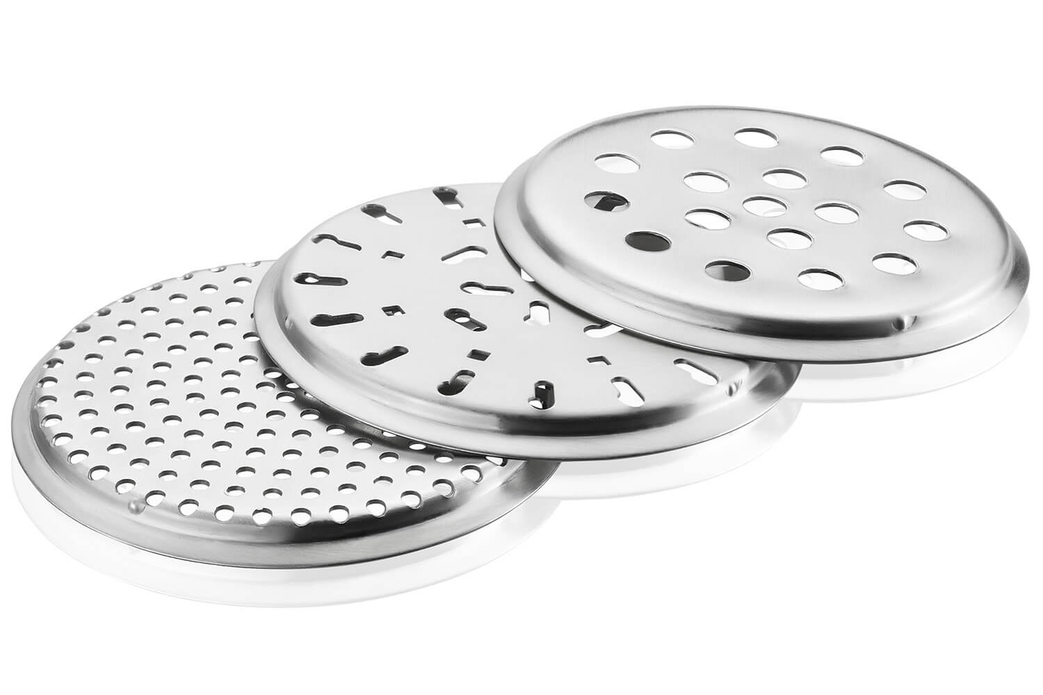 La presse Gesu Penso est équipée de 3 disques perforés interchangeables, elle s'adapte facilement à toutes vos préparations :