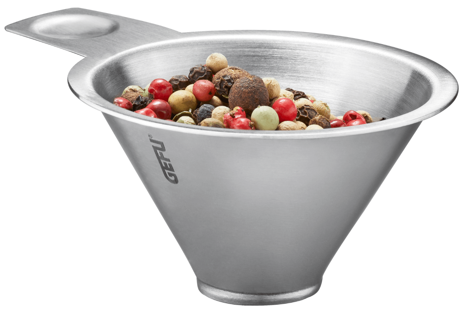 L'entonnoir à épices Gefu Condio est un petit accessoire de cuisine qui peut s'avérer très utile pour remplir vos moulins à épices, vos salières et poivrières, ainsi que vos bocaux à épices. Simple, propre et polyvalent, il est l'ustensile idéal pour une cuisine précise et sans tracas.