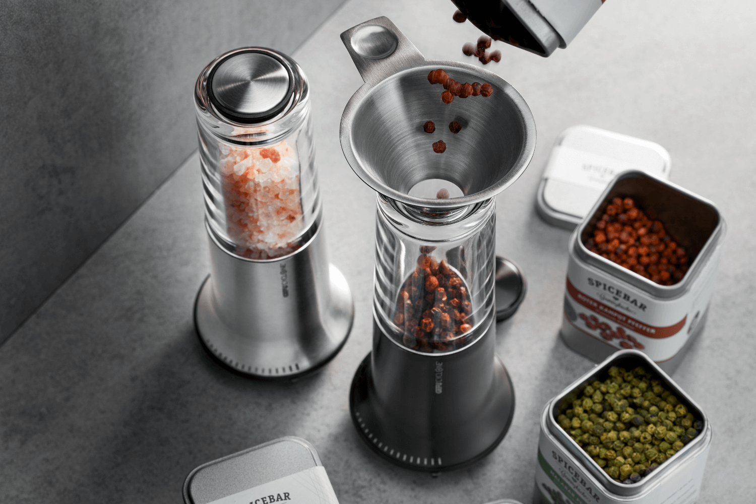 La forme conique de l'entonnoir permet de diriger les épices précisément vers l'ouverture de votre récipient, sans en renverser sur votre plan de travail. L'ustensile est pourvu d'une poignée ergonomique avec un support pour le pouce pour le stabiliser pendant que vous remplissez le contenant.