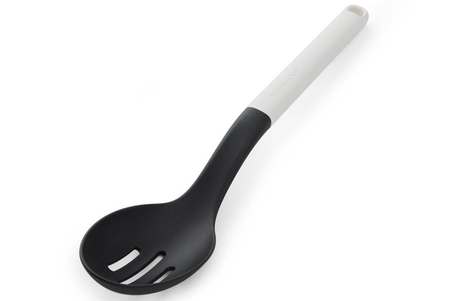 Grâce à cette cuillère ajourée Kitchen Aid, écrasez et égouttez vos ingrédients avec une grand facilité, pour faire des soupes ou encore des ragoûts succulents. Elle est équipée d'une tête en nylon de qualité, adaptée au contact alimentaire. Celle-ci est également résistante aux températures élevées, jusqu'à 232°C / 450°F. Par ailleurs, elle peut être utilisée pour préparer des plats dans divers ustensiles de cuisson, y compris ceux ayant une surface antiadhérente. Ainsi, vous n'aurez aucun souci à vous faire, car elle ne laissera aucune rayure sur vos casseroles.