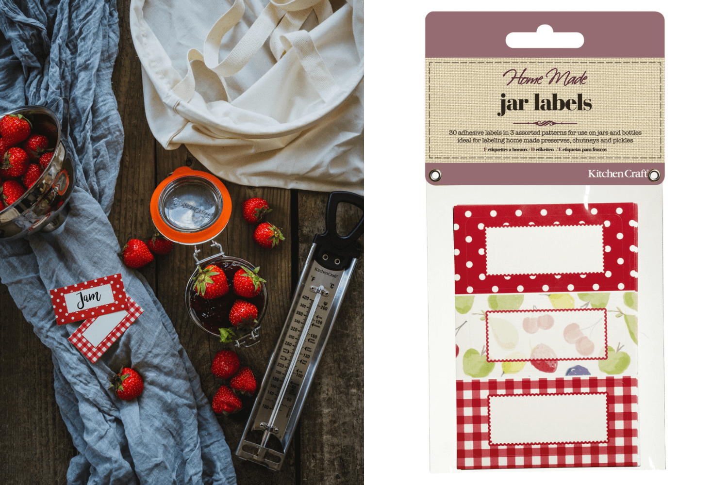 Ce pack de 30 autocollants KitchenCraft Home Made présente 3 motifs d'antan. En vous l'offrant, vous avez 10 étiquettes vichy rouge, 10 étiquettes pois blancs sur rouge, et 10 étiquettes fruits frais du verger. À vous d'organiser vos pots comme bon vous semblera !