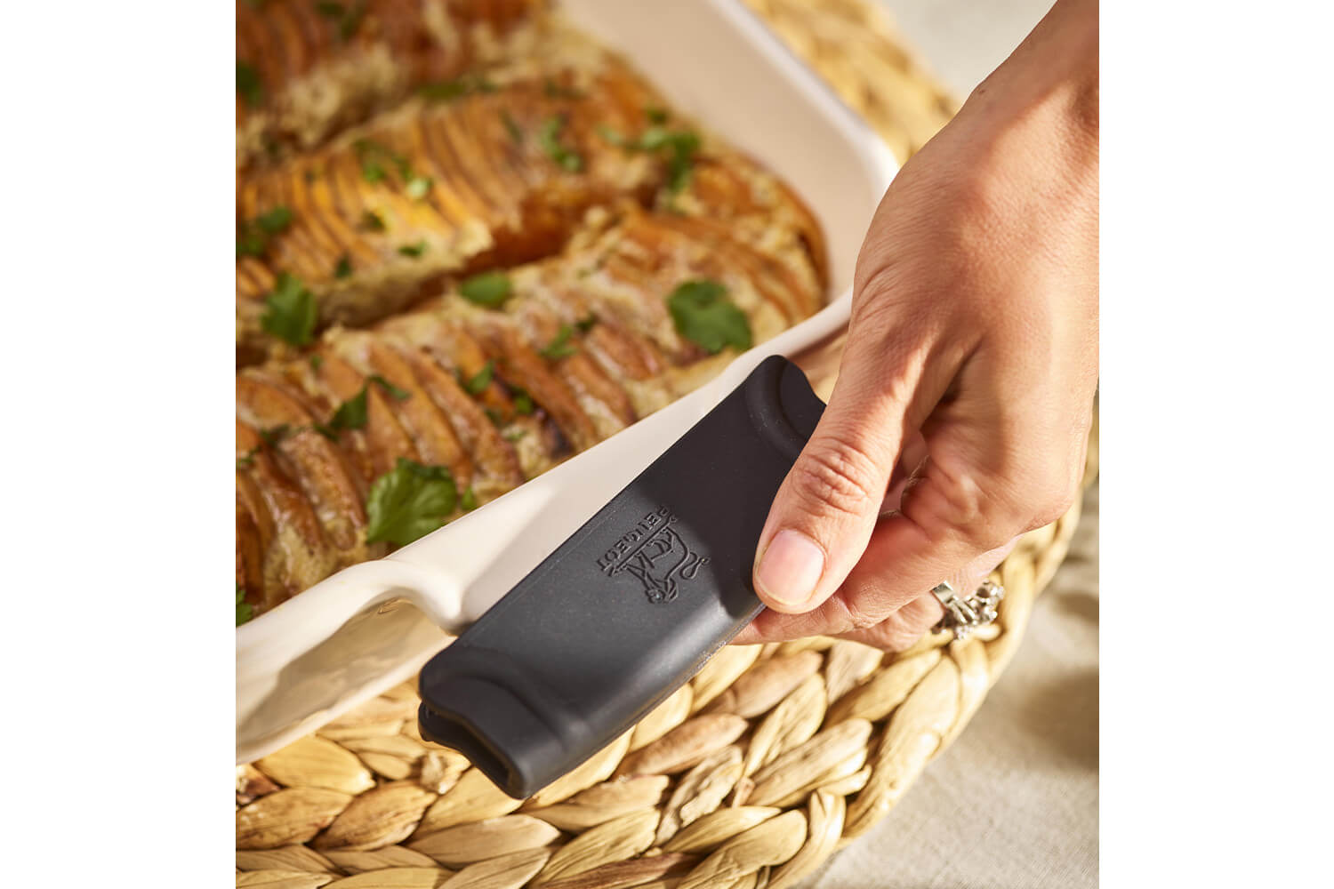 Ces poignées en silicone sont spécialement conçues pour accompagner les plats Peugeot Appolia. Ces poignées noires et élégantes offrent une prise en main sûre et confortable, idéale pour manipuler vos plats chauds en toute sécurité. Grâce à leur design ergonomique et leur texture antidérapante, elles sont parfaites pour sortir vos préparations du four sans risquer de vous brûler !
