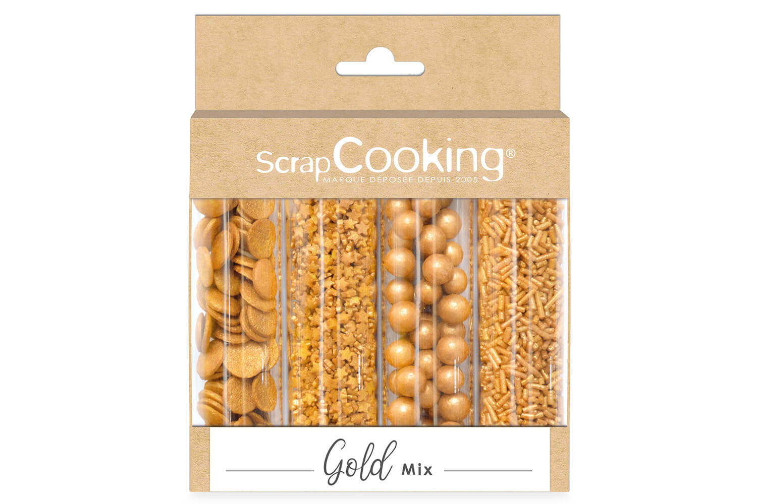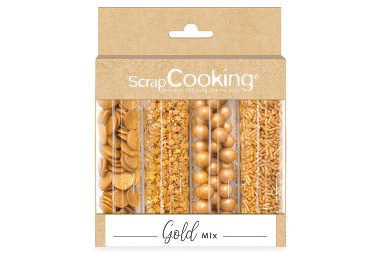 Ce set de 4 tubes de décors sucre Gold Mix Scrapcooking est idéal pour faire scintiller vos pâtisseries maison ! Chaque tube contient un motif unique pour multiplier les effets visuels : vermicelles, confettis, bubbles et mini étoiles, le tout dans un somptueux doré lumineux qui attire l’œil.