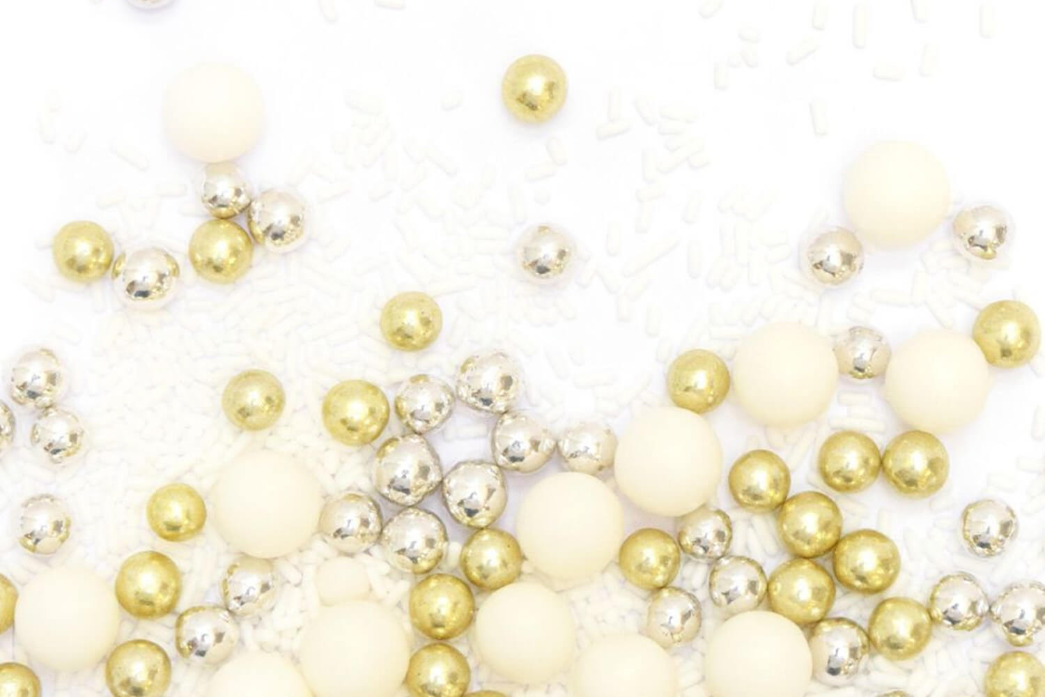 Perles en sucre brillantes – Blanc, or et argent