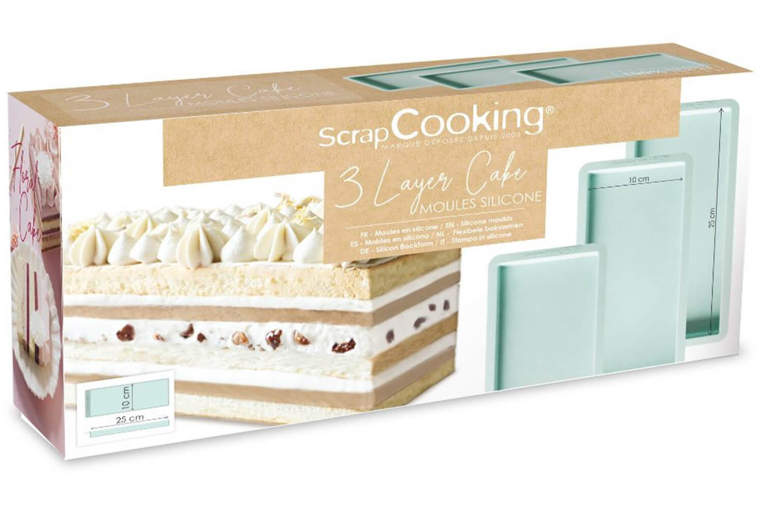 Ce set de 3 moules en silicone Scrapcooking Layer Cake est un incontournable pour les amateurs de pâtisserie créative ! Grâce à leur format rectangulaire et leurs dimensions intérieures de 25 x 10 cm, ils sont conçus pour réaliser facilement génoises, crèmes, mousses ou inserts pour tous vos layer cakes et bûches maison.