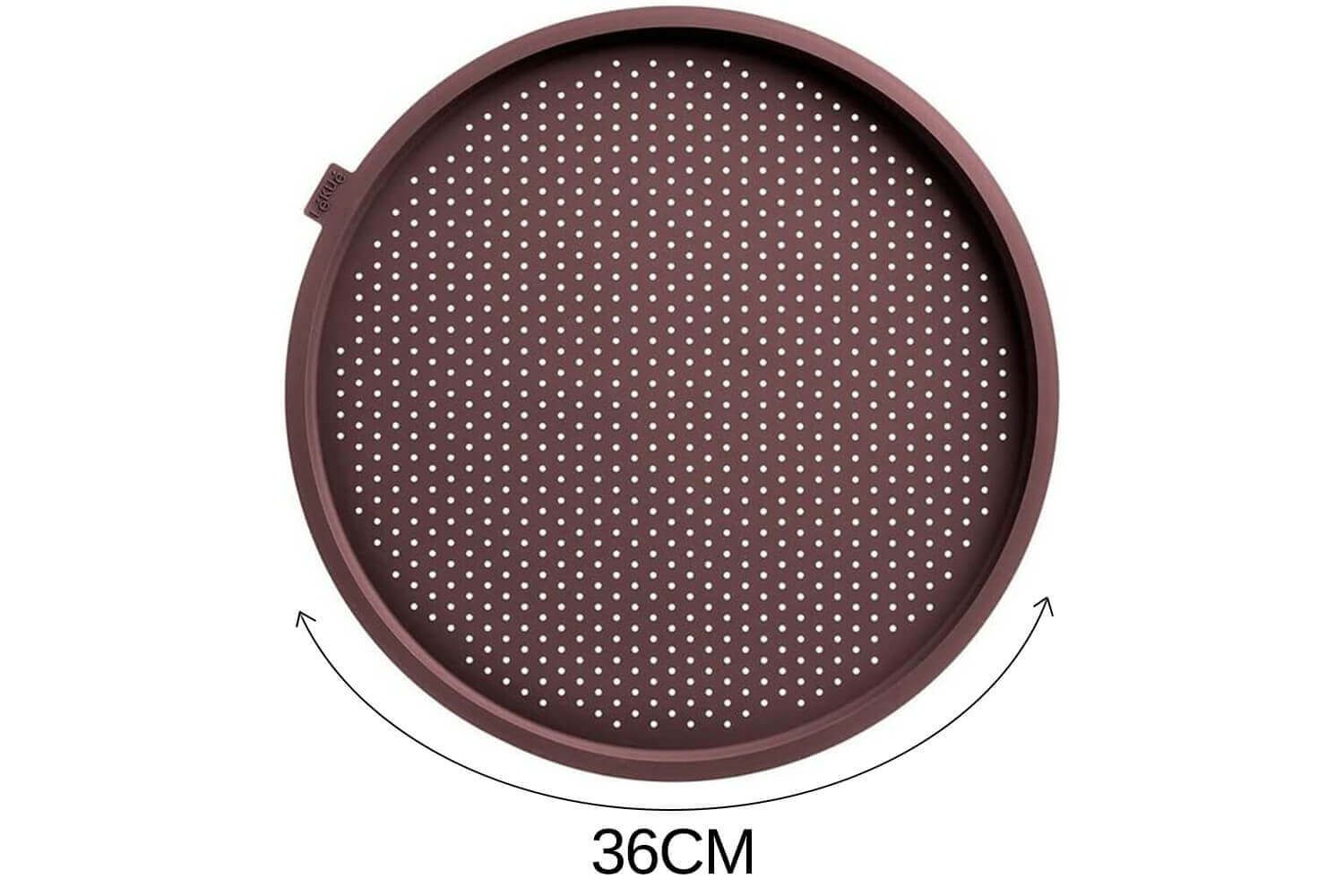 Le tapis d'un diamètre de 36cm a la taille parfaite pour préparer une pizza pour toute la famille. Sa surface est parsemée de nombreuses perforations qui permettent à l'air de circuler pour une cuisson homogène, mais pas seulement. Après cuisson, la pizza refroidit uniformément, ce qui permet d'obtenir une pâte très croustillante.