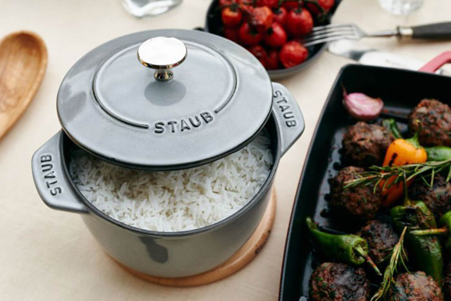 Cette cocotte Staub est fabriquée en fonte émaillée, un matériau naturel qui assure une excellente conduction de la chaleur. Cette conduction se fait de manière progressive et uniforme. L'émaillage de la cocotte, appelé Black Matt, est un revêtement hautement résistant à l'usure et qui préserve durablement votre cocotte. En plus de cela, il empêche le riz d'accrocher au fond de la cocotte et à ses parois, garantissant ainsi une cuisson optimale.