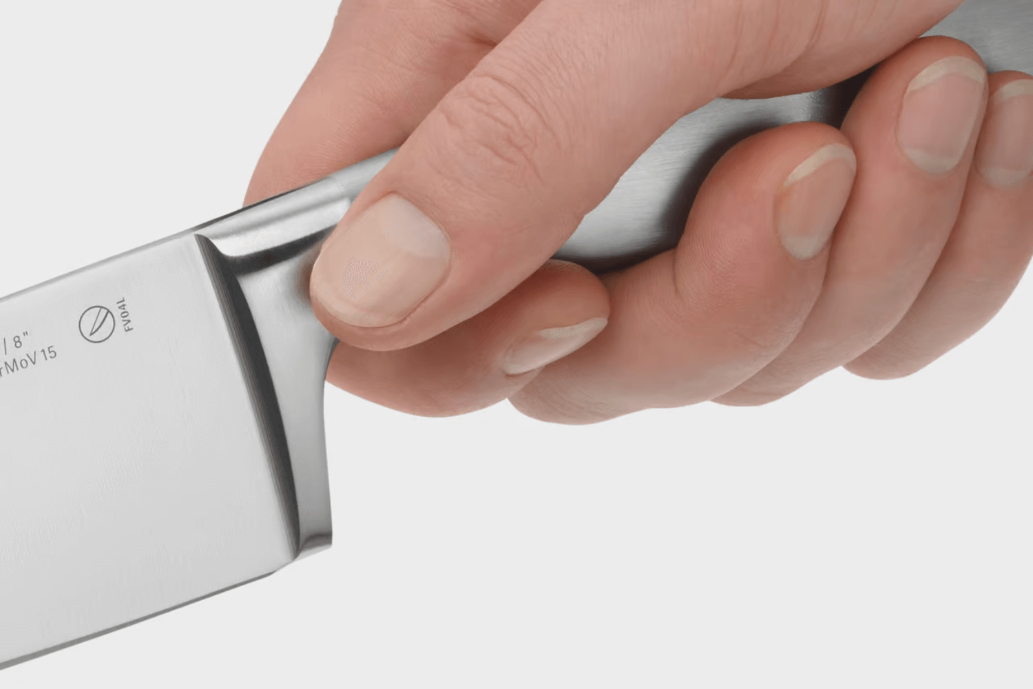 Le couteau de chef Grand Gourmet est muni d'une grande mitre. Celle-ci protège vos doigts, pour une utilisation sécurisée lors de la découpe des aliments.