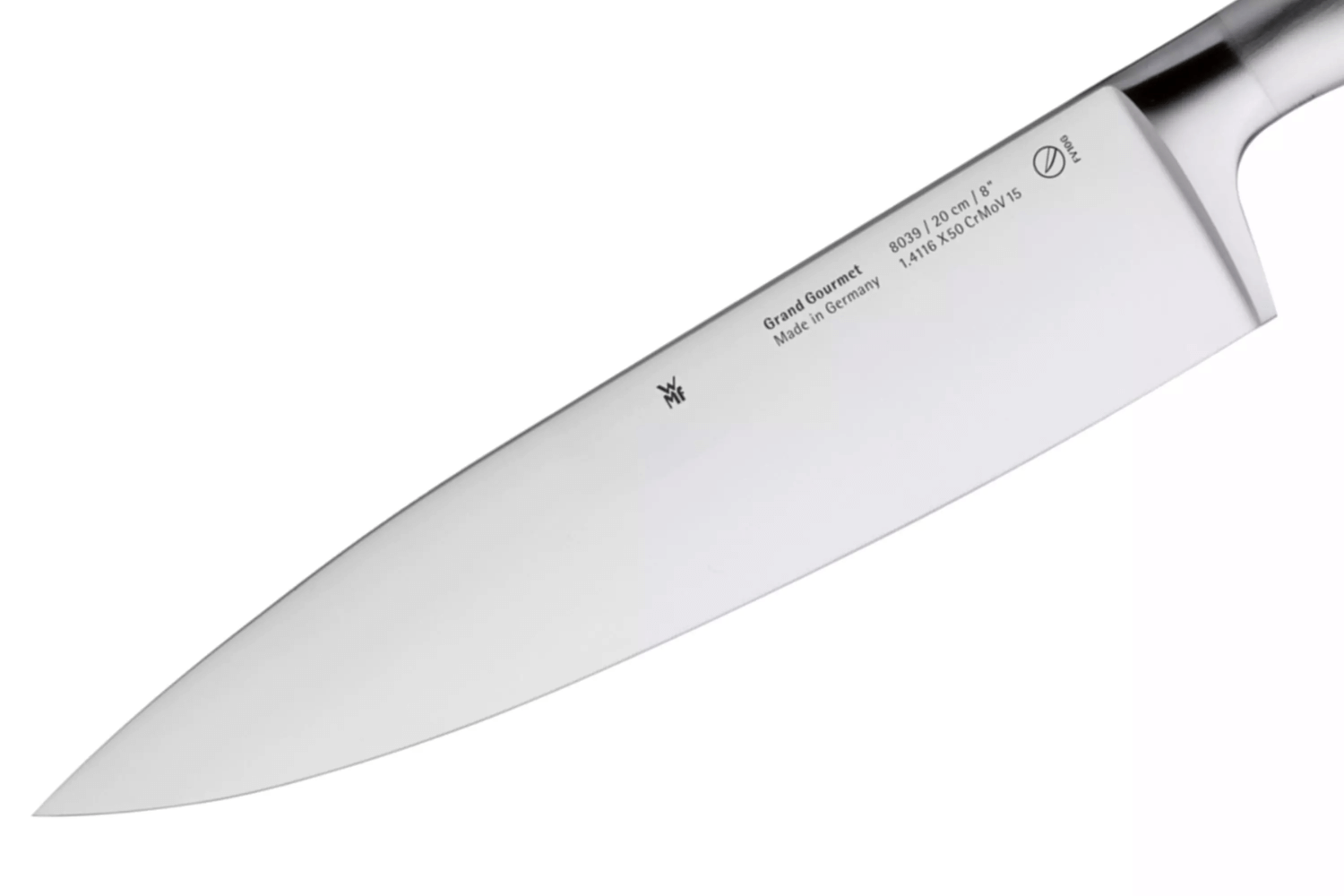 Quant à sa lame, elle est conçue en acier inoxydable 1.4116 X50CrMoV15. Il s'agit d'un alliage de qualité alimentaire, résistant à la corrosion et à l'acidité. Cette lame de 20cm est forgée à la main de manière experte. En outre, elle bénéficie de la Technologie WMF Performance Cut. Ainsi, elle est munie d'un tranchant acéré et durable, adapté à diverses tâches de découpe en cuisine. Avec ce couteau WMF, découpez avec facilité et netteté vos viandes, vos poissons, mais aussi vos légumes et fruits à chair dure.