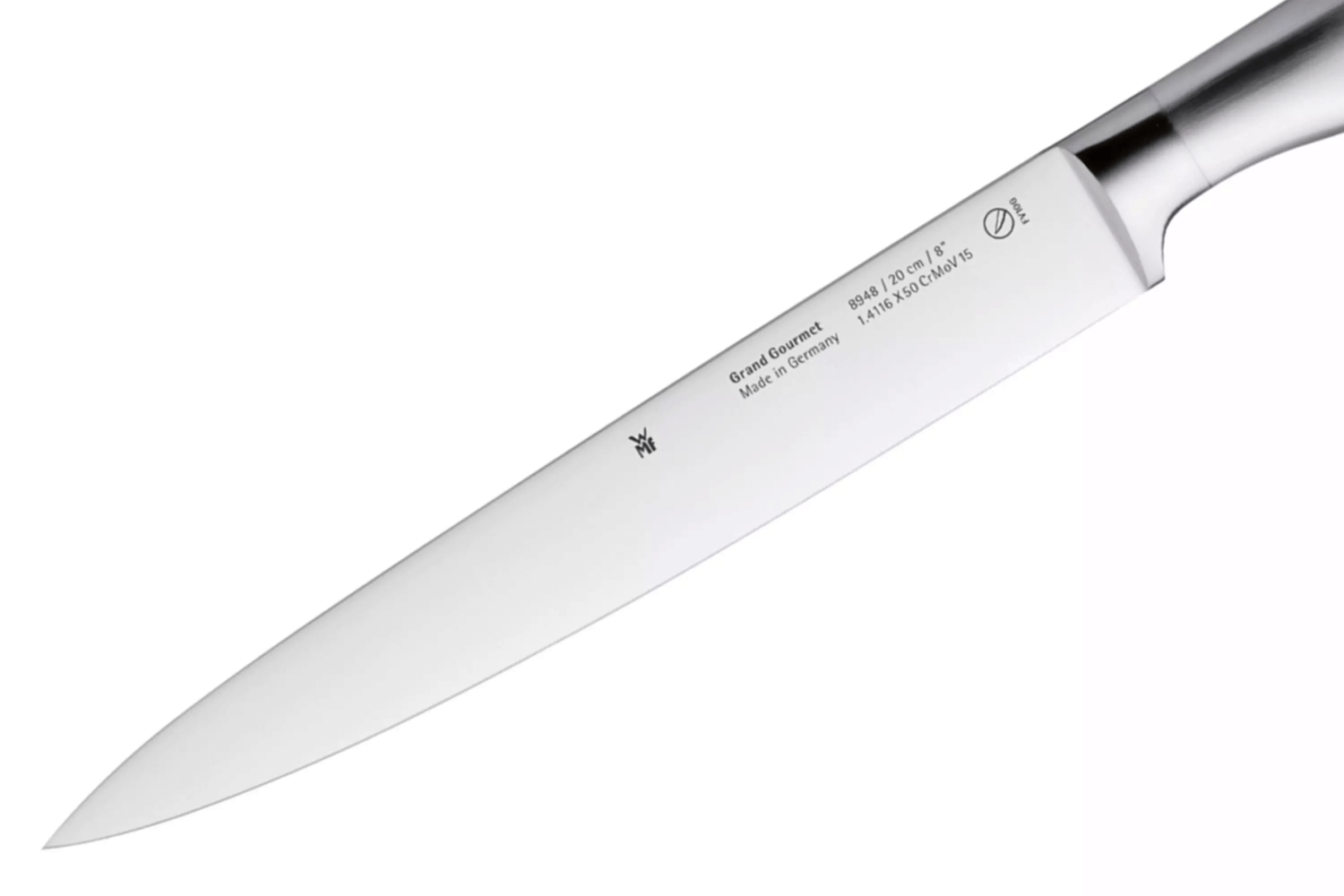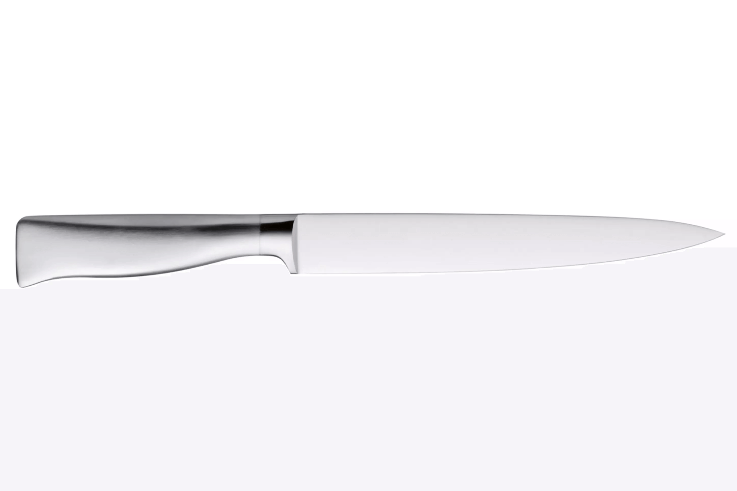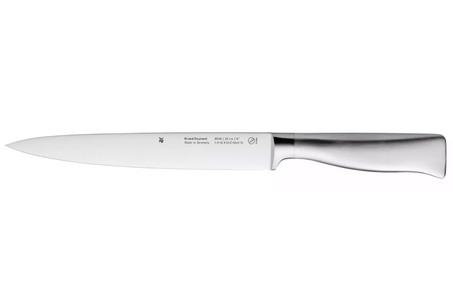La collection Grand Gourmet de WMF met à votre disposition une large gamme de couteaux de cuisine tranchants et durables. Ils sont dotés de manches ergonomiques et de lames acérées, répondant à toutes les attentes en termes de découpe et de performance. Fabriquée en Allemagne et dessinée par le célèbre designer Makio Hasuike, chaque pièce est forgée à la main par des experts, avec des méthodes et technologies modernes. Tous les couteaux sont esthétiques, efficaces, et confortables en main ; et ce couteau à découper WMF Grand Gourmet fait partie des plus prisés du lot !